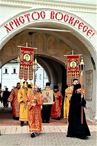 По окончании богослужения духовенство и прихожане Успенского монастыря прошли крестным ходом от обители до руин приходской Никольской церкви. На месте утраченного храма было совершено молебное пение.