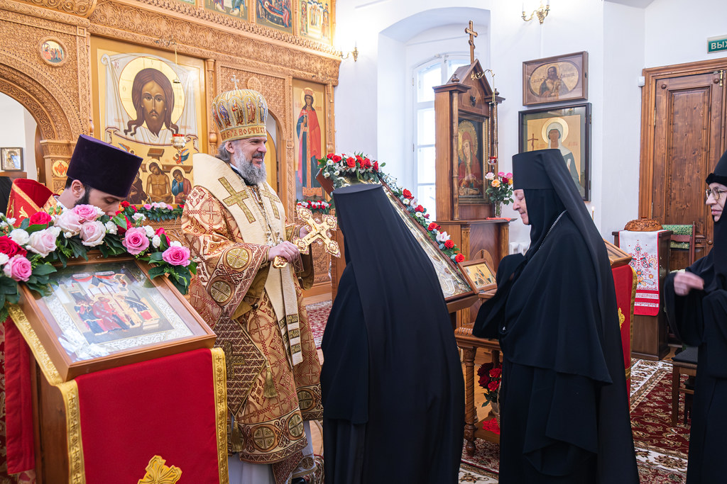 За Литургией молились настоятельница монастыря игумения Иулиания (Ритониеми), настоятельница Вознесенского Оршина женского монастыря игумения Евпраксия (Инбер), настоятельница Христорождественского женского монастыря Твери игумения Лариса (Лобанова), настоятельница Николаевского Клобукова женского монастыря Кашина игумения Варвара (Иванова), главный федеральный инспектор по Тверской области аппарата полномочного представителя Президента Российской Федерации в Центральном федеральном округе С.Н. Свитин, сестры и прихожане обители.