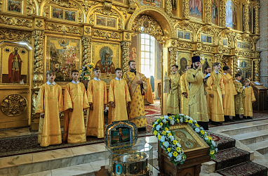 Богослужебные песнопения исполнил мужской концертный хор «Держава», под руководством регента Ильи Мельникова.