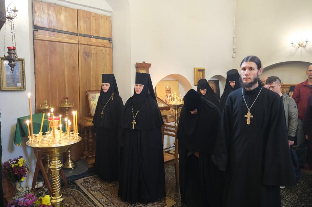 За Литургией молилась настоятельница Ризоположенского монастыря игумения Екатерина (Иванова) с сестрами обители.