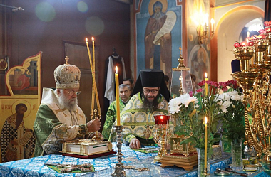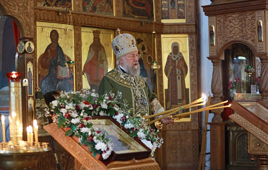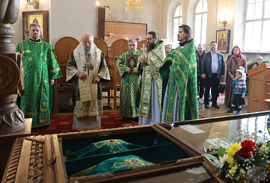 Епископ Иннокентий приложился к мощам и обратился к собравшимся с архипастырским словом. В своем слове владыка поздравил насельников и прихожан с днем памяти небесного покровителя обители.