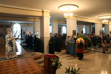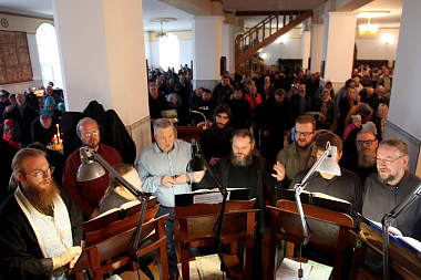 Богослужебные песнопения исполнил братский хор монастыря под управлением иеромонаха Глеба (Мандзяка).