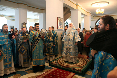 По окончании Литургии глава Липецкой митрополии приветствовал Преосвященных архипастырей, сослужащее духовенство, насельников и прихожан обители, поздравив всех с престольным торжеством.