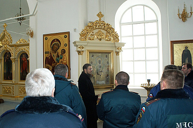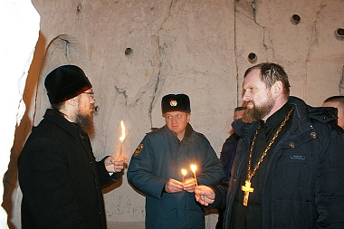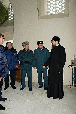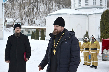 После передачи мобильного противопожарного поста монастырю иеромонах Алексий (Сукачев) провел для гостей экскурсию по обители и монастырскому пещерному комплексу, после чего участников мероприятия пригласили на трапезу.
