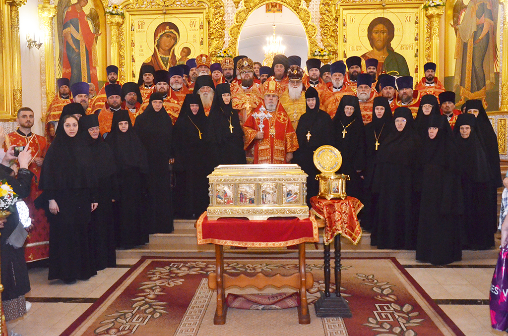 За богослужением молились настоятельница Воскресенского Новодевичьего женского монастыря Санкт-Петербурга игумения София (Силина) и настоятельницы монастырей Пермской и Соликамской епархий.