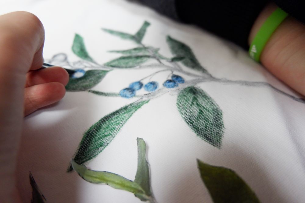 В процессе рисования, чтобы рисунок не отображался на обратной стороне изделия, внутрь кладут бумагу. Готовый рисунок должен высыхать в течение суток, а потом его закрепляют – просто гладят утюгом, проложив ткань сверху и снизу изображения. После этого вещь можно стирать, рисунок не сотрется.