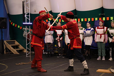 В феврале к нам приехала Тульская Богатырская Дружина, которая организовала древнерусские богатырские игры для студенток колледжа и старшеклассниц школы.