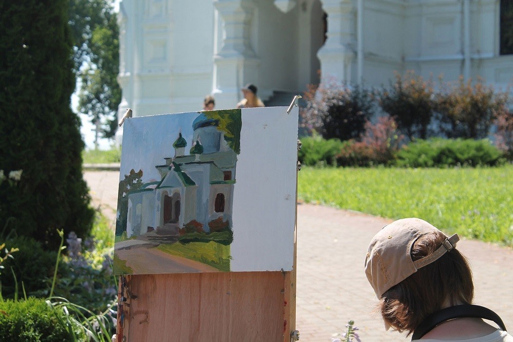 В июле в Феодоровском женском монастыре города Переславля-Залесского можно было увидеть учащихся художественной мастерской Пелагеи Невзоровой – в рамках пленэра они писали акварелью и маслом, делали зарисовки архитектуры и территории обители, в программу также входила работа со стеклом в витражной мастерской.