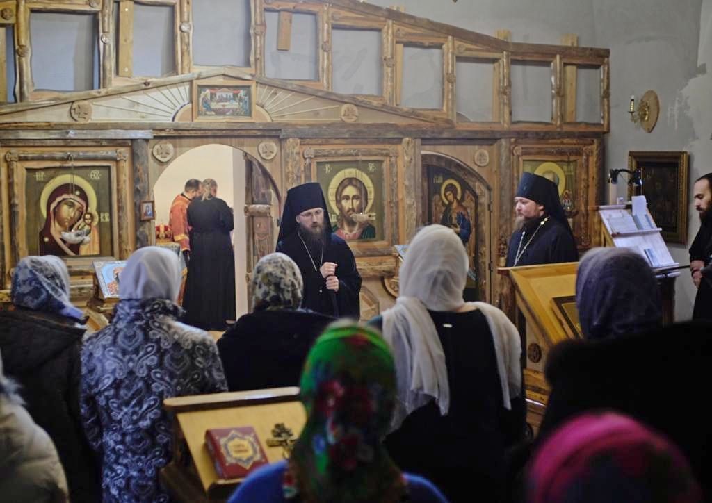 Накануне вечером епископ Игнатий возглавил всенощное бдение в сослужении настоятеля монастыря игумена Иова (Чернышева) с братией обители в священном сане.