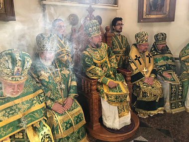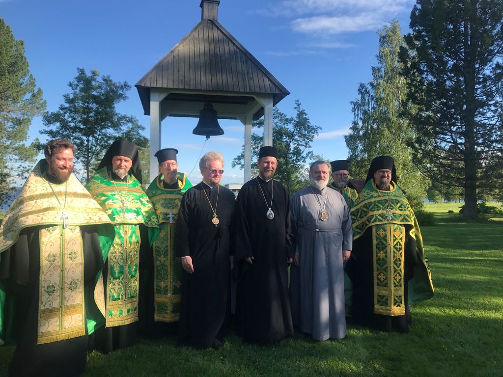 13 июня епископ Йоэнсууский Арсений, епископ Выборгский и Приозерский Игнатий и епископ Кронштадтский Назарий совершили Литургию в Ново-Валаамском монастыре.