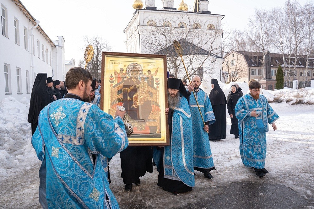 14 марта 2024 года в храме в честь святого великомученика и целителя Пантелеимона Городецкого Феодоровского мужского монастыря состоялась торжественная встреча иконы Пресвятой Богородицы «Всецарица», написанной и освященной в Ватопедском монастыре на святой горе Афон.