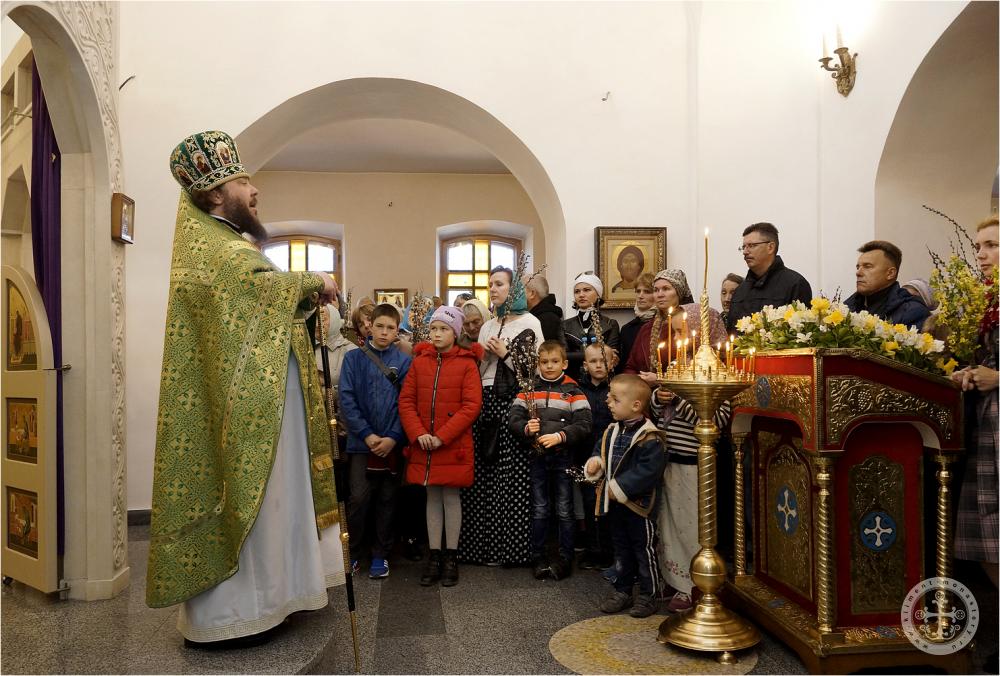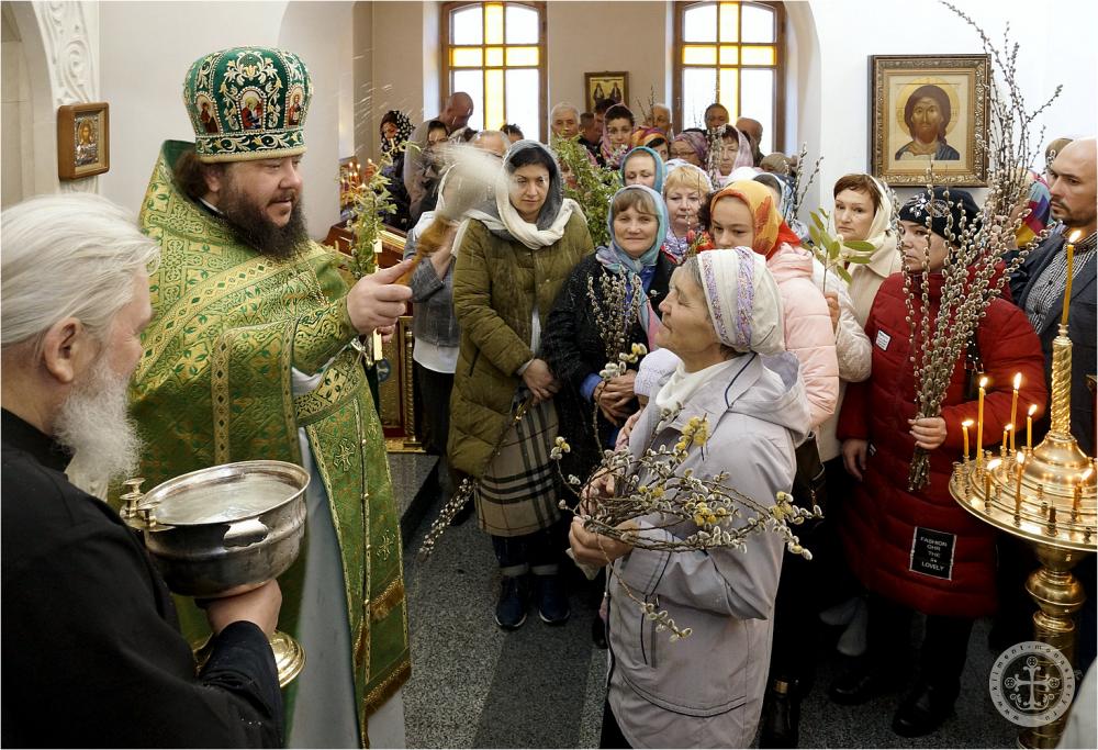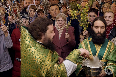 В завершение были освящены ветви вербы у прихожан и паломников, пришедших на праздничное богослужение.