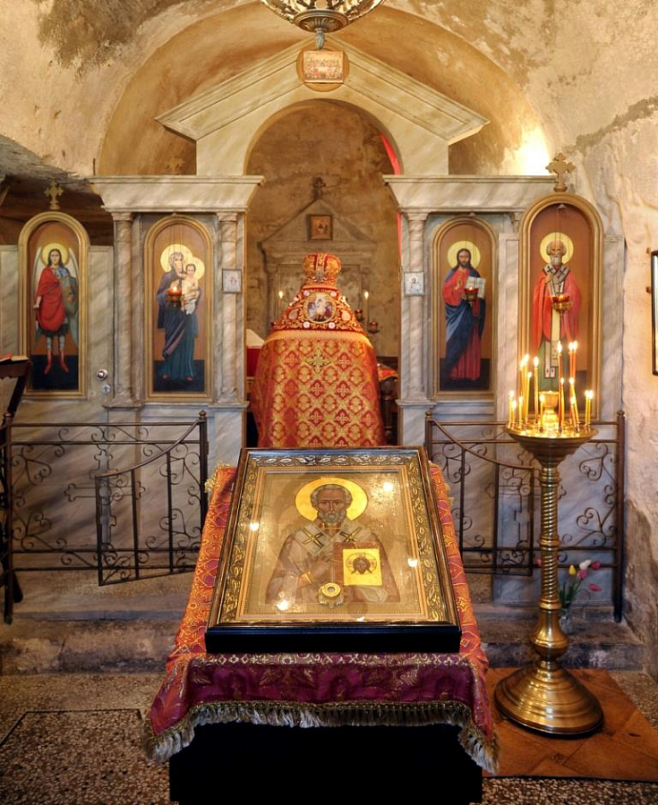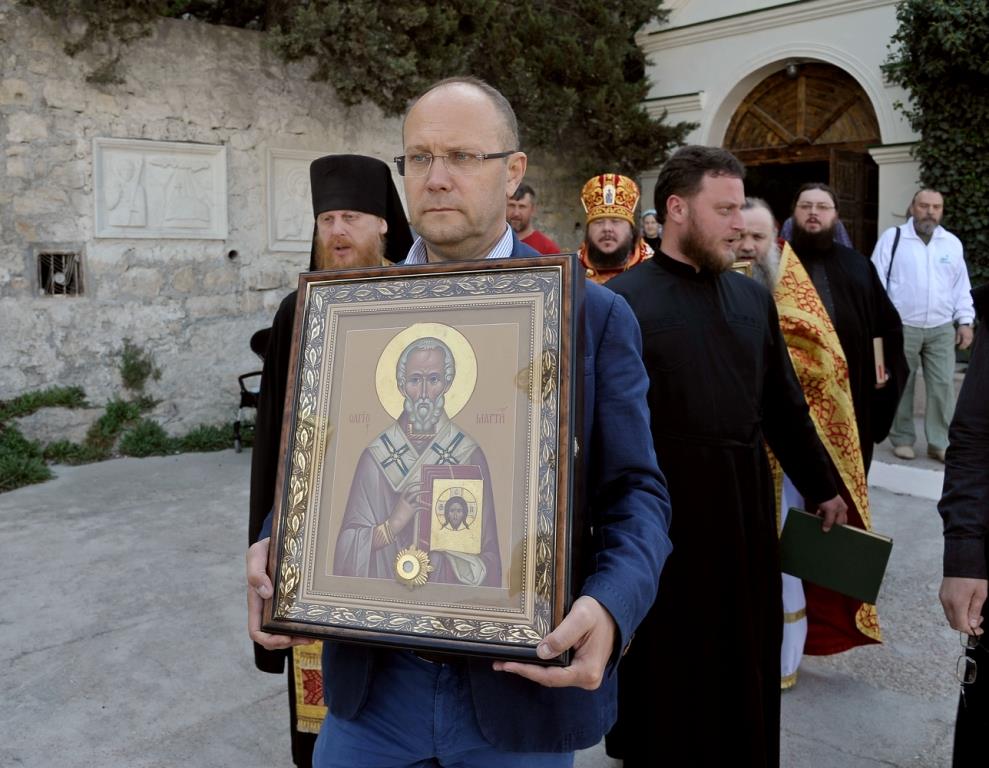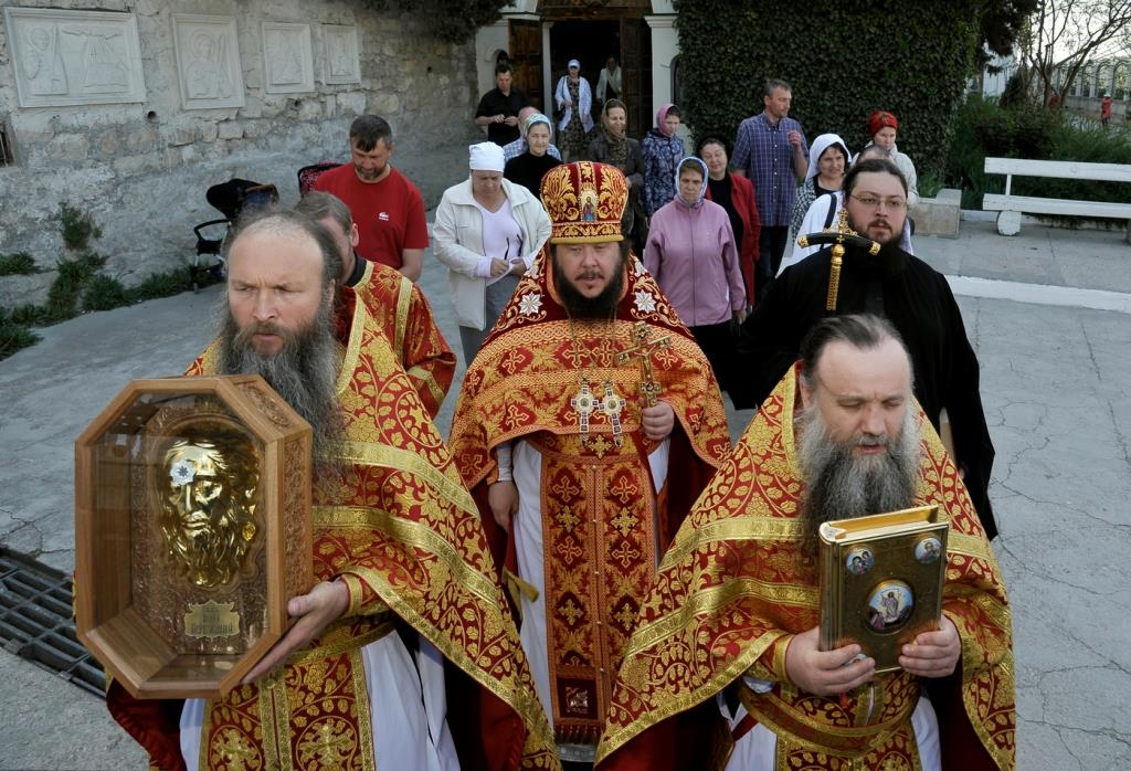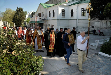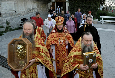 Литийное шествие стало особенным - частицей святых мощей Первоапостола Тавриды Андрея Первозванного благословил Господь древнюю обитель в этом году. Как два храма, высеченные рядом в Монастырской скале, – Святителя Мартина и Апостола Андрея, – две части их цельбоносных и чудотворных мощей в иконе и ковчеге обтекли крестным ходом весь монастырь. Ковчег же с частицей мощей святого Первозванного апостола Андрея отныне будет находиться на центральном аналое Андреевской скальной церкви I века – самого древнего действующего пещерного храма на всей канонической территории Русской Церкви.