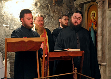 Пением древним Знаменным распевом руководил регент архиерейского хора протодиакон Антоний Марущак.