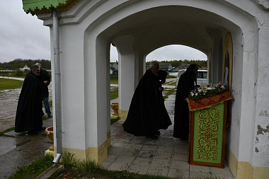 Утром в Успенском храме обители был отслужен молебен с водосвятием.