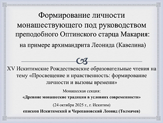 24 октября 2025 года, в день Собора всех святых, в Оптиной пустыни просиявших, в актовом зале Духовно-просветительского центра Искитимской епархии, в рамках XV Искитимских Рождественских образовательных чтений на тему «Просвещение и нравственность: формирование личности и вызовы времени» прошла монашеская секция: «Древние монашеские традиции в условиях современности».