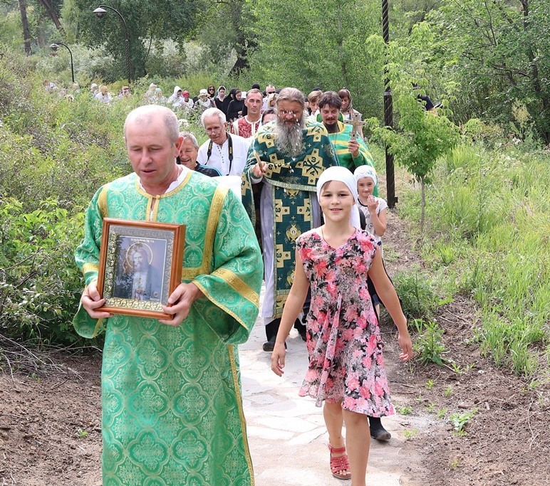 По окончании богослужения духовенство, насельницы монастыря и прихожане прошли крестным ходом к дорожке Пресвятой Богородицы, где было совершено молебное пение с освящением. Прообразом для создания дорожки в Иверском монастыре Орска послужила известная по всей России Канавка Пресвятой Богородицы в Свято-Троицком Серафимо-Дивеевском женском монастыре