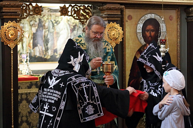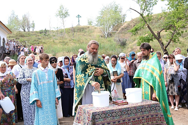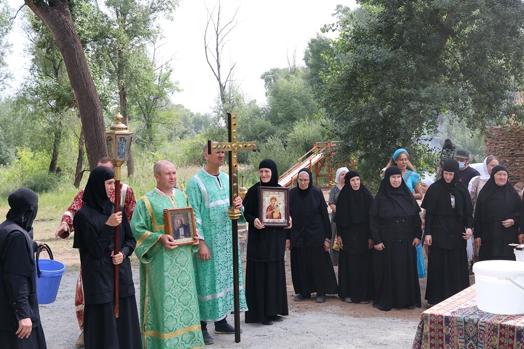 Божественную литургию совершили духовник Иверского женского монастыря протоиерей Сергий Баранов, клирик монастыря иеромонах Филарет (Давыдов) и клирик храма Преображения Господня г. Орска священник Александр Карпунин.