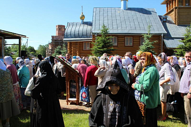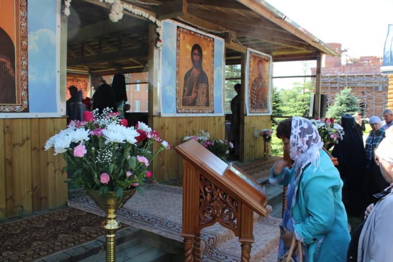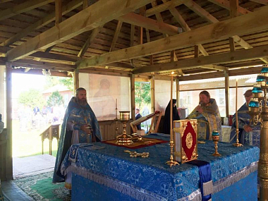 Богослужение совершалось под открытым небом рядом с деревянным храмом в честь Иконы Божией Матери «Споручница грешных».