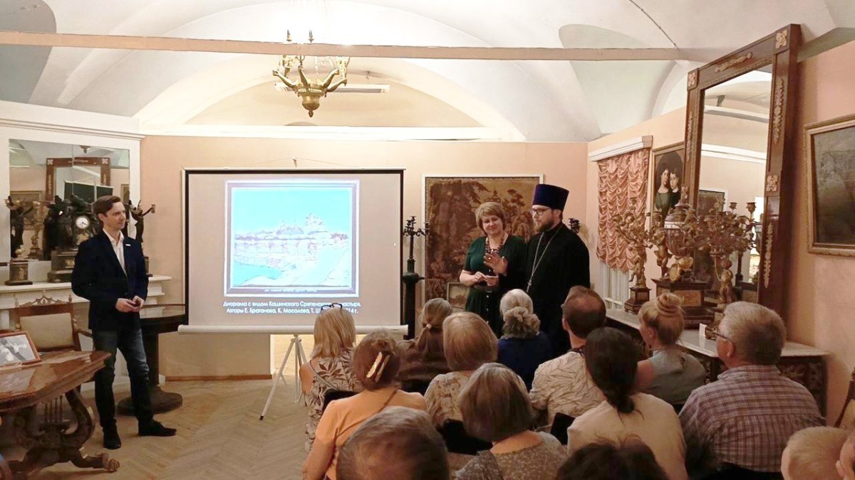 В Кашинском краеведческом музее состоялась встреча с Николаем Онегиным – историком культуры, кандидатом культурологии, старшим научным сотрудником государственного Эрмитажа с краеведами, жителями и гостями города. Одна из тем встречи – объемная картина «Вид Сретенского монастыря города Кашина» (1914 г.), хранящаяся в Кашинском краеведческом музее.