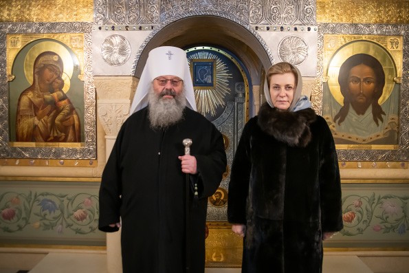 В сопровождении главы Татарстанской митрополии Анна Юрьевна посетила Крестовоздвиженский храм, где приложилась к древнему списку Казанской иконы Божией Матери. Архипастырь рассказал об истории обретения чудотворного образа, значении иконы в судьбе России, похищении первоявленного образа и обстоятельствах передачи в Казань ныне хранящегося в монастыре Ватиканского списка.