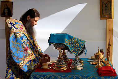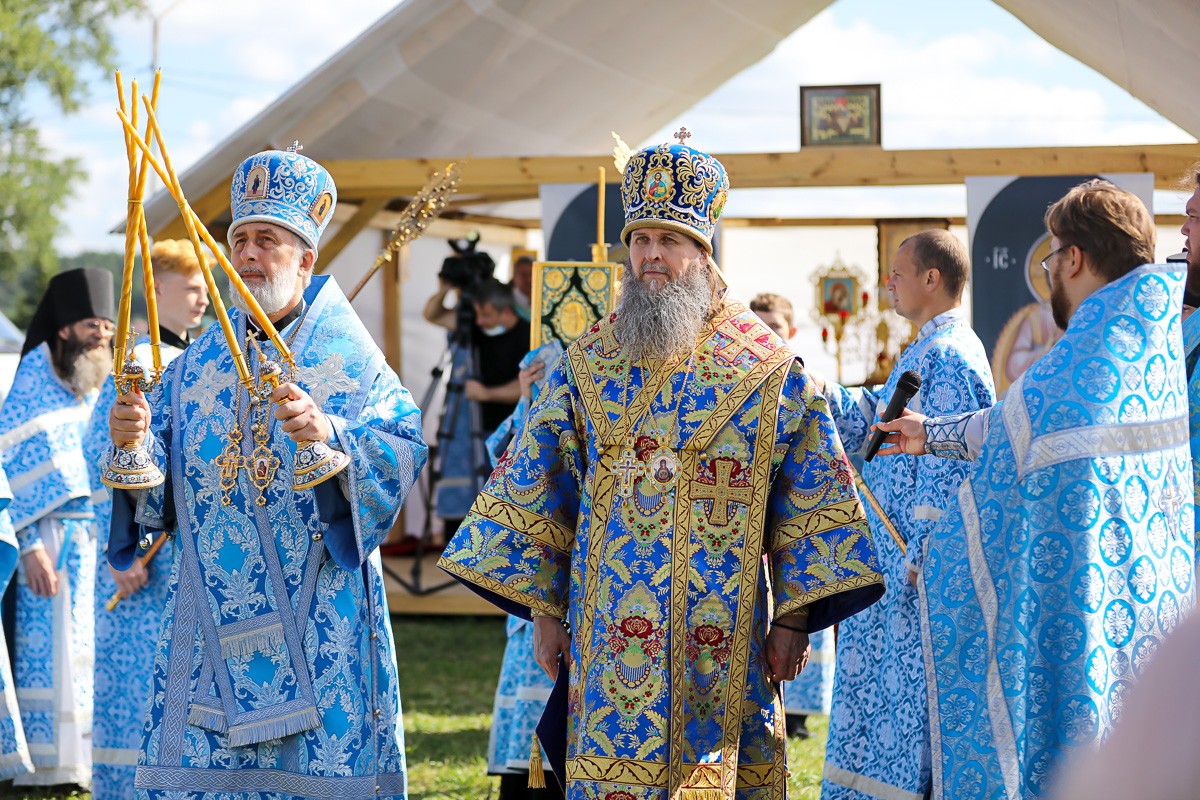 Впервые за историю Чимеевской обители богослужение в престольный праздник проходило под открытым небом. Для этого на поляне между братским корпусом и храмом в честь иконы Пресвятой Богородицы «Неупиваемая Чаша» были возведены навес и алтарная часть.