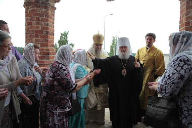 Епископ Вениамин поздравил всех собравшихся в этот торжественный день в храме с праздником – столетним юбилеем освящения Казанского храма. «Этот соборный храм, – отметил владыка, – строился по благословению праведного Иоанна Кронштадтского, и святитель Тихон, будучи правящим архиереем Ярославской епархии, тоже имел попечение об этом монастыре и обещал, что, когда собор будет достроен, он обязательно приедет освятить его. И сегодня мы испрашиваем помощи у святителя Тихона, чтобы он своими молитвами и ходатайством помог возродить Казанский монастырь».
