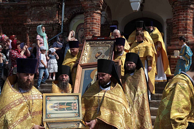 Накануне, 20 июля, в Казанскую обитель доставили ковчег с частицей мощей святителя Тихона. Святыня пребывала в монастырском храме и в день престольного праздника, и в день торжественного празднования юбилея.