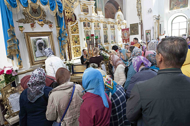 В канун праздника в монастыре было отслужено всенощное бдение, во время которого перед почитаемым Казанским образом совершили пение акафиста.