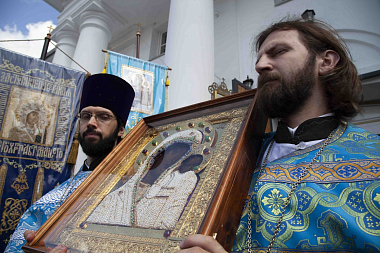 По окончании Литургии верующие прошли крестным ходом с Казанским образом вокруг той территории, которую до революции занимала обитель.