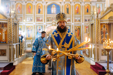 Его Преосвященству сослужили клирик кафедрального собора Вознесения Христова г. Магнитогорска иерей Максим Малюшкин и благочинный Кизильского округа протоиерей Андрей Стадник.