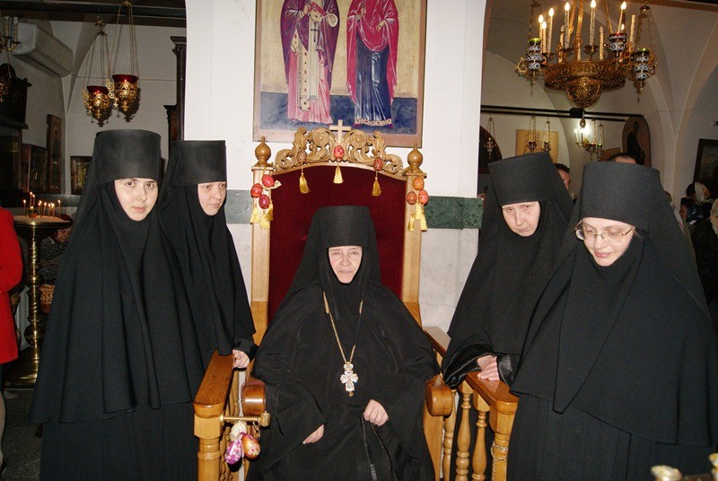 ИгумениюНеониллу с праздником Пасхи поздравили митрополит Екатеринодарский и Кубанский Исидор, игумении других монастырей, благодетели, прихожане; самым приятным поздравлением было поздравление начальника Русской Духовной Миссии в Иерусалиме архимандрита Александра (Елисова).