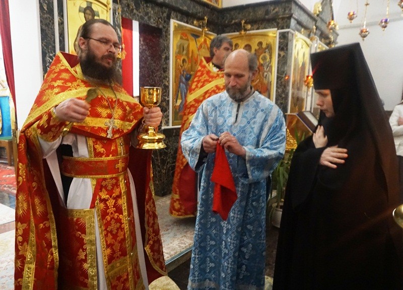Проповедь по окончании Литургии в городе произнес протоиерей Олег Криволап, на подворье в храме Благовещения – иерей Николай Сорокин.