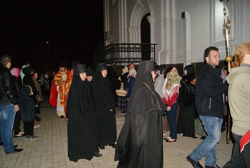 В течение всего пасхального дня священники освящали пасхальные куличи и яйца и другую снедь, принесенную прихожанами. На колокольне весь день звучал колокольный звон в исполнении прихожан обители и их детей.