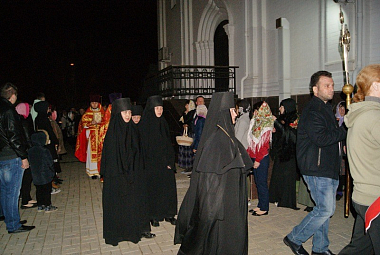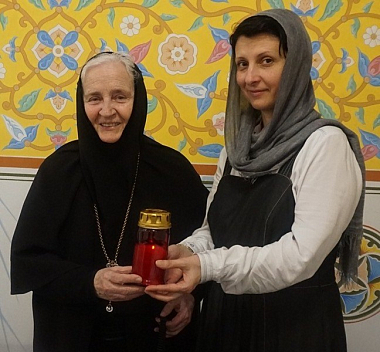 Накануне, в Великую Субботу, в Краснодар самолетом доставили Благодатный огонь из Иерусалима, и все лампады в храмах монастыря сестры зажгли Благодатным огнем.