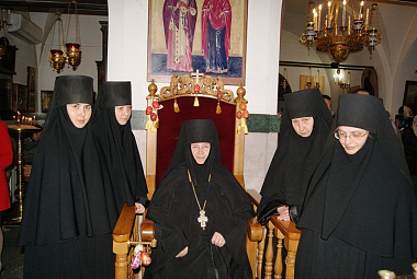 Пасхальные песнопения византийским распевом исполнили насельницы монастыря.