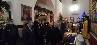 В празднично украшенных храмах накануне было совершено всенощное бдение, в сам день праздника три Божественных литургии: одна в полночь и две утренних.