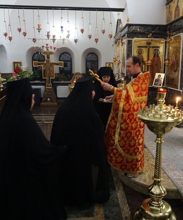 Монашествующие за ночной Литургией причастились Святых Христовых Таин. Проповедь по окончании Литургии в обители в городе произнес протоиерей Олег Криволап, на подворье в храме Благовещения – иеромонах Тихон (Орлов).