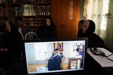 По окончании беседы участники телемоста исполнили задостойник праздника и отец Авраам благословил всех сестер.