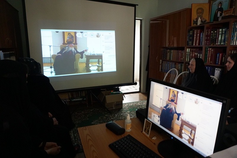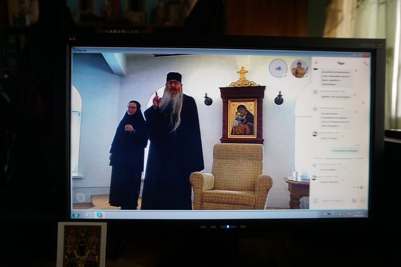 После трапезы игумения Неонилла и насельницы обители приняли участие в телемосте с Александро-Невским Ново-Тихвинским женским монастырем Екатеринбурга. В программе «Skype» духовник Ново-Тихвинской обители схиархимандрит Авраам (Рейдман) проводил духовную беседу.