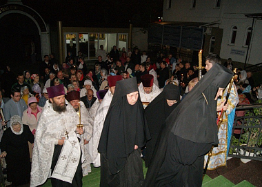 Этот праздник в обители праздновали в 17-й раз. Ночные пасхальные богослужения были совершены в двух храмах: «Всецарица» в г. Краснодаре и новом храме Благовещения на подворье в Динском районе.
