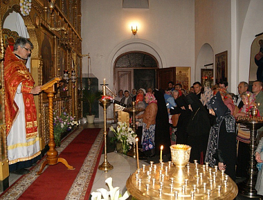 Почти все молящиеся за ночной Литургией причастились Святых Христовых Тайн. Проповедь по запричастном стихе в городской обители произнес протоиерей Олег Криволап, на подворье в храме Благовещения – иеромонах Тихон (Орлов).