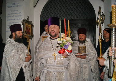 Под праздничный колокольный звон крестный ход обошел вокруг храмов, и пасхальная утреня совершалась на паперти.