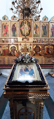 Накануне было совершено всенощное бдение, утром в день праздника – Божественная литургия, 9-й час и великая вечерня с тремя коленопреклонными молитвами, а вечером читался акафист Святой Троице.