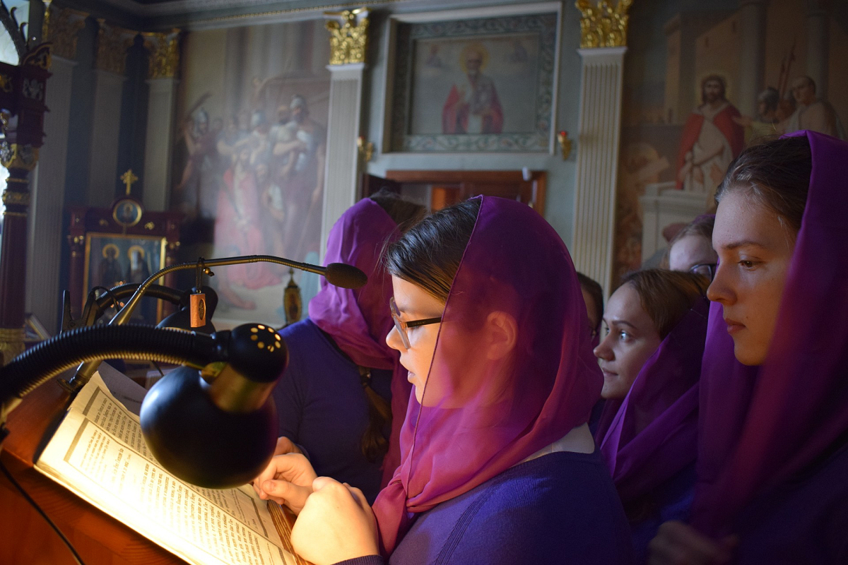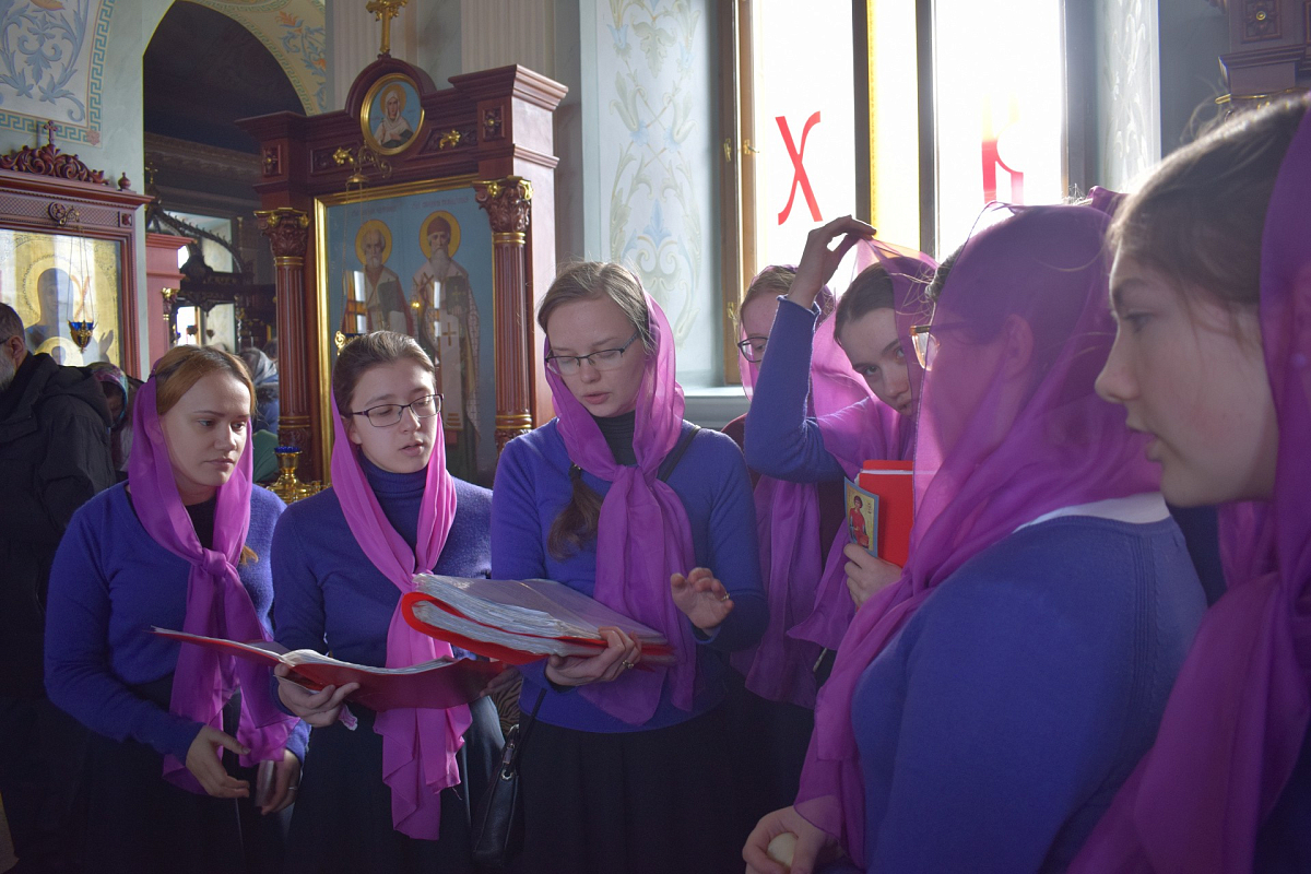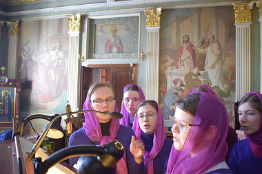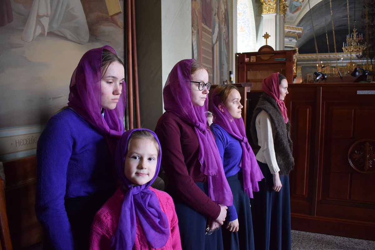 Юные певчие были одеты в новую форму, по великопостному фиолетовую.