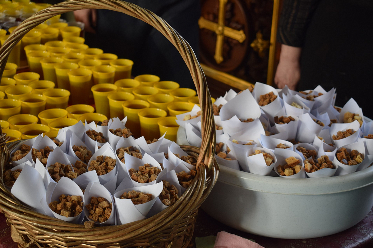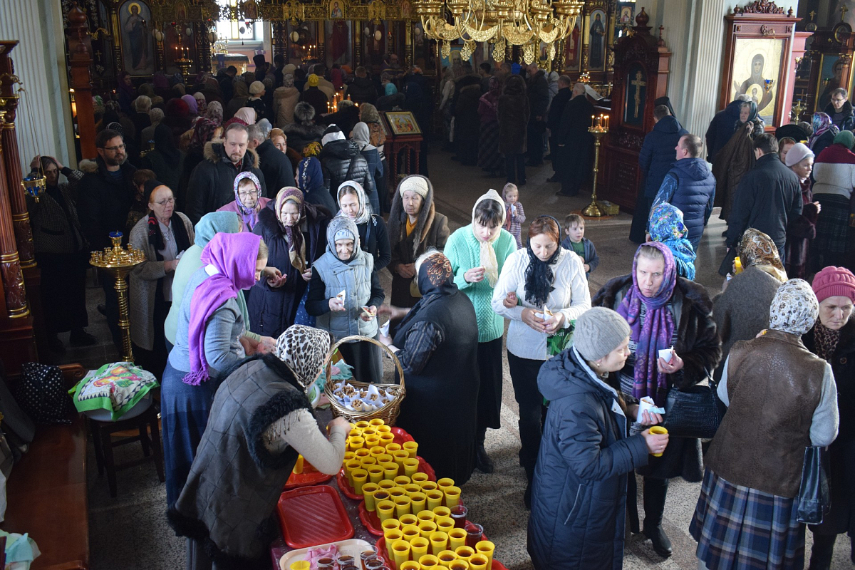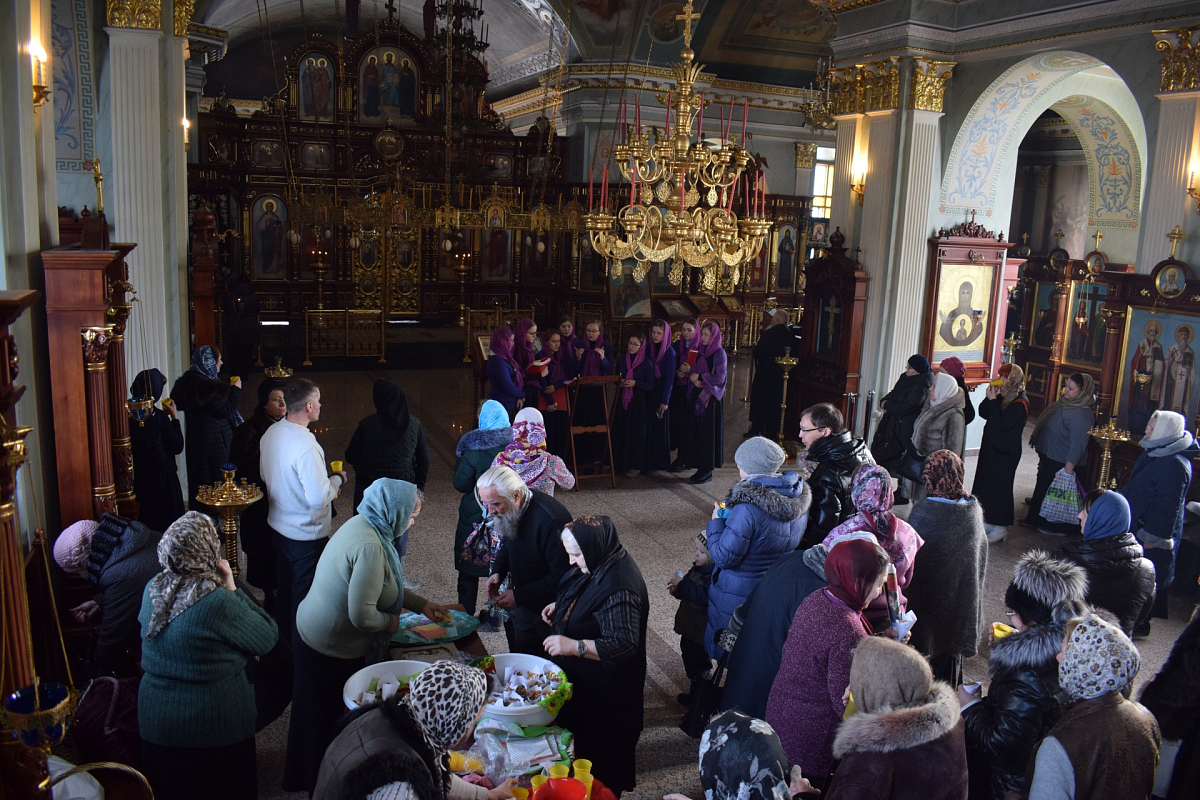 В завершение участникам богослужения было предложено великопостное угощение (освященный лукум, сухарики, специально изготовленные сестрами обители, горячий чай и компот) и розданы разные иконки.