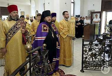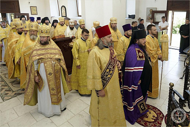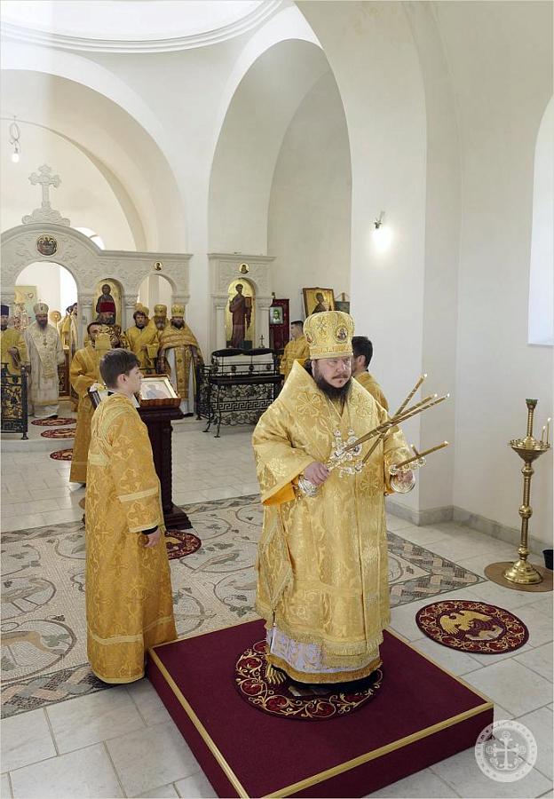 Преосвященнейший владыка Каллиник возглавил служение соборной архиерейской Литургии в сослужении сонма духовенства епархии и гостей. По окончании богослужения владыку Каллиника от лица Правящего архиерея Симферопольской и Крымской епархии митрополита Лазаря поздравил епископ Ялтинский Нестор, зачитав поздравительный адрес и преподнеся в дар панагию. Множество представителей духовенства, братии монастырей и мирян также тепло поздравили владыку.