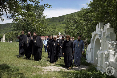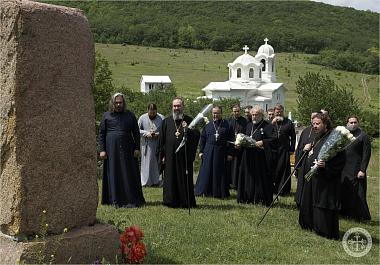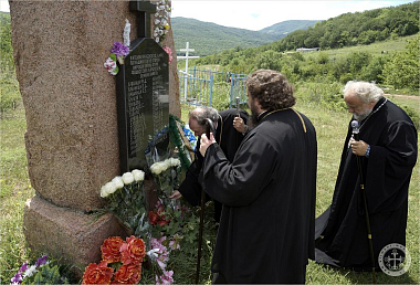По целовании креста духовенство и богомольцы направились к обелиску героям, положившим души за Отечество и други своя – погибшим на святой земле греческого селения Лаки во время Великой Отечественной войны: все 47 селян были уничтожены врагом за то, что не выдали месторасположение советских партизан. В день памяти и скорби были вознесены молитвы о упокоении душ всех погибших и возложены цветы к обелиску.
