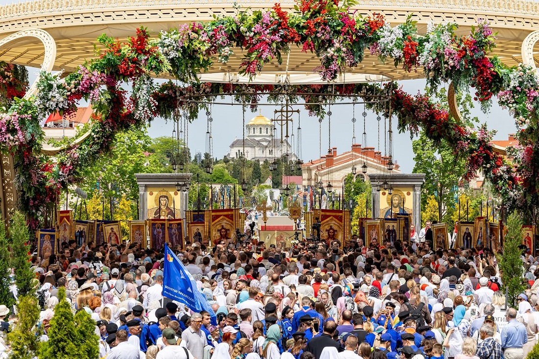 После Литургии состоялся крестный ход от Владимирского собора к храму-парку в честь Святой Троицы на территории музейно-храмового комплекса «Новый Херсонес», где был совершен благодарственный молебен равноапостольному великому князю Владимиру.