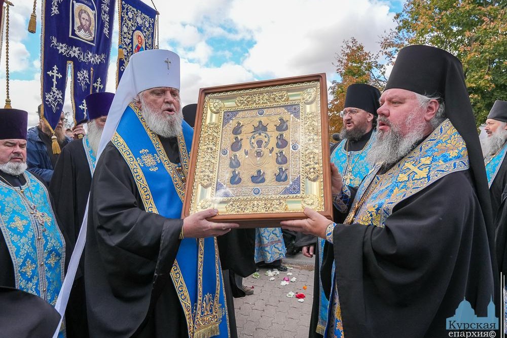 Святыня была перевезена в Знаменский монастырь города Курска на автотранспорте. Икону в пути сопровождал митрополит Курский и Рыльский Герман. Сохраняя многовековую традицию, которая соблюдалась даже в страшные годы гонений, некоторые православные куряне прошли часть пути традиционного крестного хода отдельными группами самостоятельно.